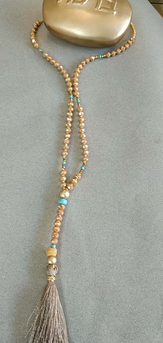 שרשרת רכה ומפנקת בשילוב קריסטלים ,גדיל ואבני טורקיז